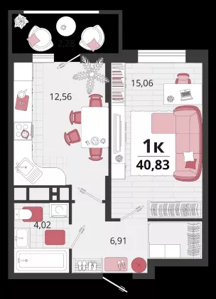 Продается однокомнатная новостройка, 40.83 кв.м., 12/18 эт