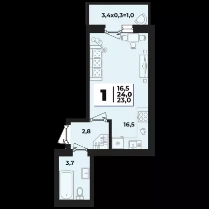 Продается Студия новостройка, 24 кв.м., 4/5 эт