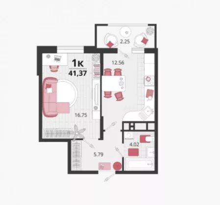 Продается однокомнатная новостройка, 41.37 кв.м., 14/18 эт