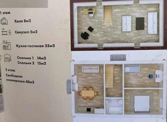 На первом этаже: холл,большая кухня гостиная 25 м2, две спальни14 м2+15 м2, санузел 5 м2, стены идеально штукатурены и шпатлёваны, готовы к покрейки обоев. Холл , кухня гостиная и санузел установлен тёплый пол., на полу ровная стяжка, готовая к укладке ламината, линолиума или напольного покрытия ( на ваш выбор), УСТАНОВЛЕН КОТЕЛ navien! Натяжной потолок в подарок!!!