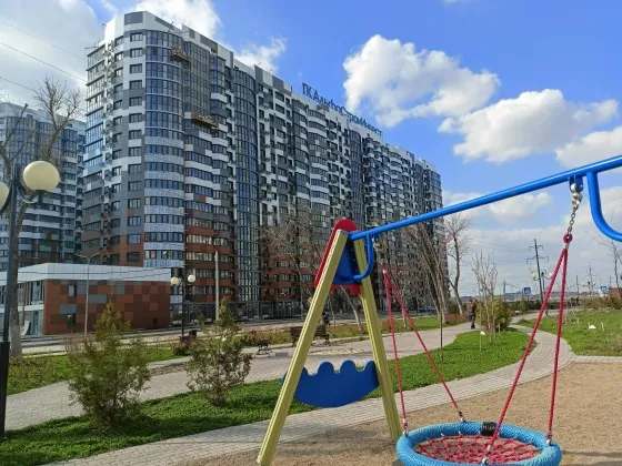 Современный дом, красивая входная группа, Придомовая территория продумана до мелочей, широкий двор с большим количеством парковочных мест, красочные детские площадки. Рядом новая школа, строится большой торговый центр и в ген. плане детский сад. Вся инфраструктура в шаговой доступности, множество продуктовых магазинов, салонов, аптек, пекарня, кофейня, центр здоровья и все что нужно для жизни. Возле дома проходит зеленая аллея с поющим фонтаном, прекрасное место для отдыха. Район очень перспективный, хорошая транспортная развязка. По всем вопросам звоните Анна