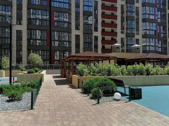 На территории видеонаблюдение, ай-пи домофоны, в подъездах консьержи. Во дворе стилобат с парковочными местами и красочными детскими площадками для детей и зоной отдыха для взрослых.