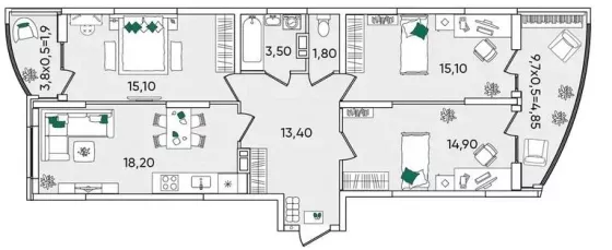 Трёхкомнатная квартира, шикарная планировка квартиры на две стороны, комнаты светлые и просторные.