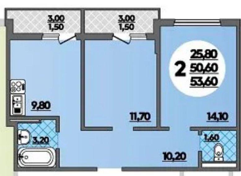 Продается 2-х комн. квартира, 53.6 кв.м., 1/18 эт