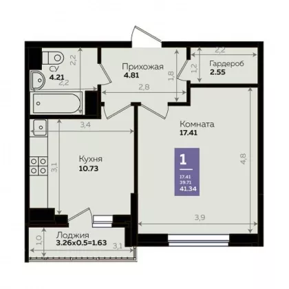 Продается однокомнатная квартира, 41.34 кв.м., 20/24 эт