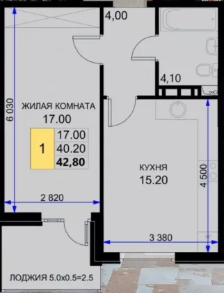Продается однокомнатная новостройка, 42.9 кв.м., 3/7 эт