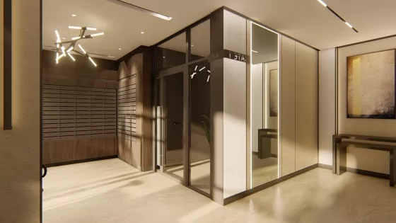 Дизайнерские входные группы, с современными лифтами, на первом этаже колясочные, веллопарковки.