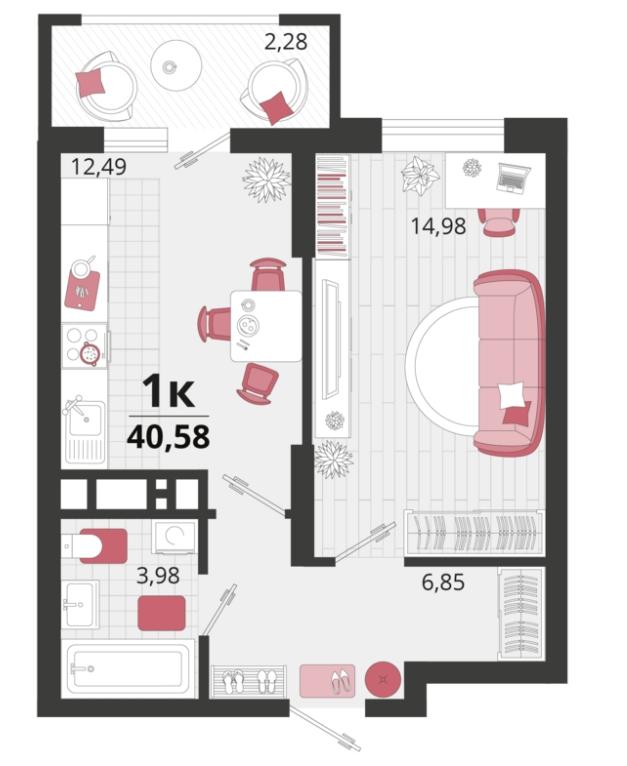 Продается однокомнатная новостройка, 40.58 кв.м., 15/18 эт