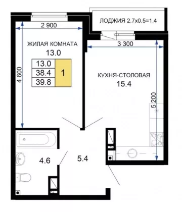 Продается однокомнатная квартира, 38.2 кв.м., 14/16 эт
