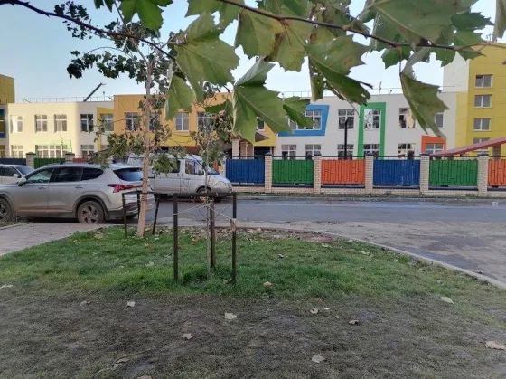 На первой линии ЖК высажен молодой яблоневый сад, красивая аллея с зонами отдыха. Много парковочных мест, двор вымощен плиткой, красочные безопасные детские площадки ограждены от проезжей части.