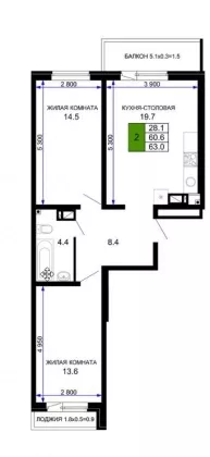 Продается 2-х комн. квартира, 63 кв.м., 16/16 эт
