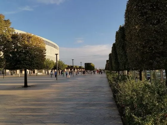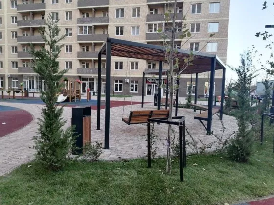Чистый воздух, высажен молодой яблоневый сад, красивая аллея с зонами отдыха. Много парковочных мест, двор вымощен плиткой, красочные безопасные детские площадки ограждены от проезжей части. По соседству красивый элитный коттеджный посёлок.