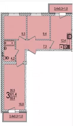 Продается 3-х комн. новостройка, 61.2 кв.м., 2/5 эт