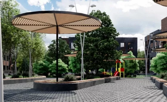 Современный жилой комплекс, 4 этажный дом с лифтом, дизайнерские входные группы, просторная придомовая территория с арт объектами, зонами отдыха для взрослых и детей, площадки для занятия спортом, парковочные места.