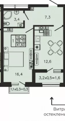Продается однокомнатная новостройка, 41.6 кв.м., 4/4 эт