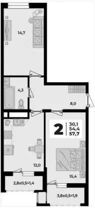 Продается 2-х комн. новостройка, 57.7 кв.м., 8/8 эт