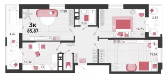 Продается 3-х комн. новостройка, 85.87 кв.м., 2/18 эт