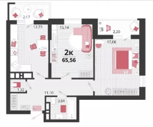 Продается 2-х комн. новостройка, 65.56 кв.м., 3/18 эт