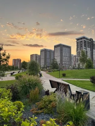 Большой парк: арт-объекты, фонтан, амфитеатр для мероприятий, фудхолл и ресторанная галерея, зона для йоги, световые качели, прогулочные аллеи и вело- дорожки,  комфортные шезлонги, скейтпарк, кинофестивальная площадка, зона воркаут и баскетбольное дерево, детский игровой городок.
