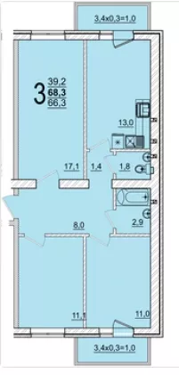 Продается 3-х комн. новостройка, 68.3 кв.м., 3/5 эт