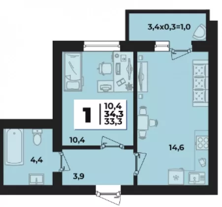 | Площадь, кв.м. | 34.3 |