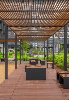 Больше чем просто жилой комплекс благоустроенное для Вас уникальное пространство, собственный детский сад, собственная общеобразовательная школа, прилегающая лесопарковая территория, благоустроенный водоем.