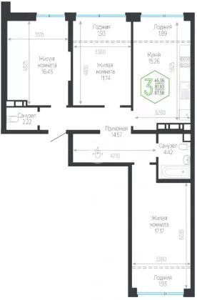 Продается 3-х комн. новостройка, 87.58 кв.м., 11/16 эт