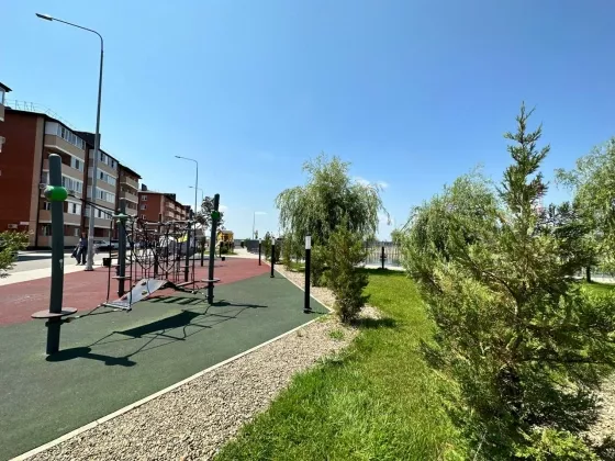 Благоустроенная придомовая территория, детские игровые площадки, спортивные площадки с безопасным покрытием для командных игр, зоны отдыха с арт-объектами.