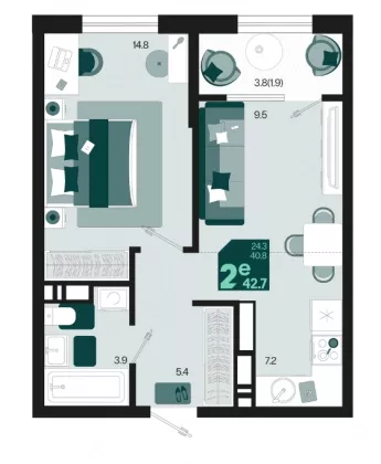 Продается однокомнатная новостройка, 42.5 кв.м., 12/18 эт