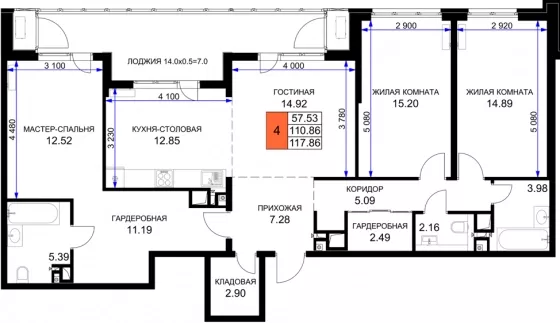Продается 4-х комн. новостройка, 117.86 кв.м., 16/16 эт