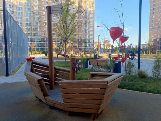 Детские и спортивные площадки, территория зонирована по тематике отдыха- для малышей, детей по старше, зоны волейбола, футбола и баскетбола, воркаут- зона!