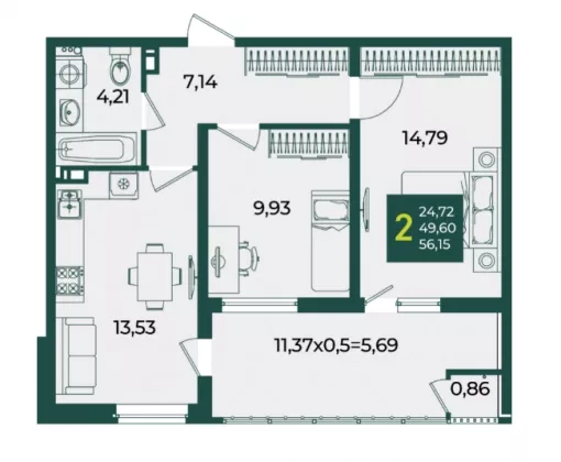 Продается 2-х комн. новостройка, 56.15 кв.м., 8/21 эт