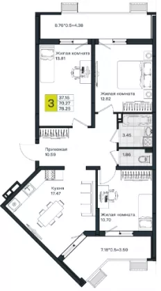 Продается 3-х комн. новостройка, 78.25 кв.м., 6/8 эт