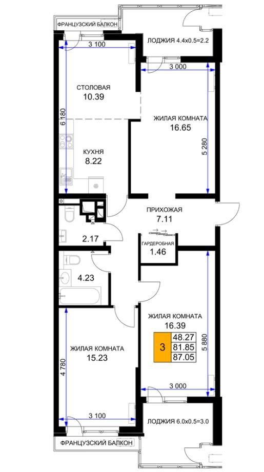 Продается 3-х комн. новостройка, 87 кв.м., 14/16 эт
