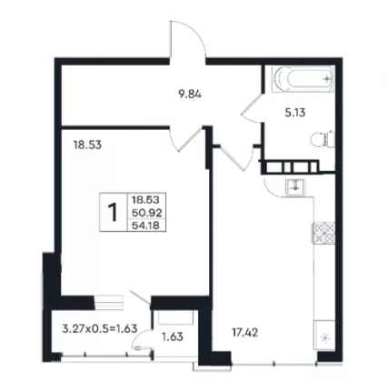 Продается однокомнатная новостройка, 54.18 кв.м., 4/10 эт