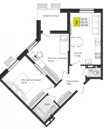 Площадь, кв.м.63.69