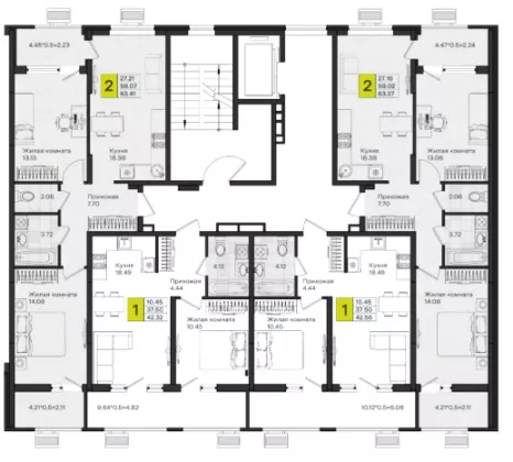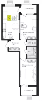 Продается 2-х комн. новостройка, 63.37 кв.м., 2/8 эт