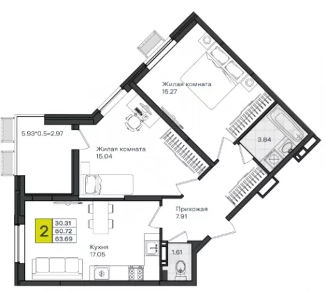 Площадь, кв.м.63.69