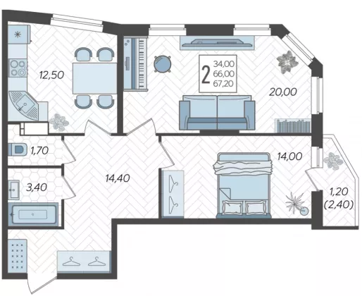 Продается 2-х комн. новостройка, 67.7 кв.м., 6/16 эт