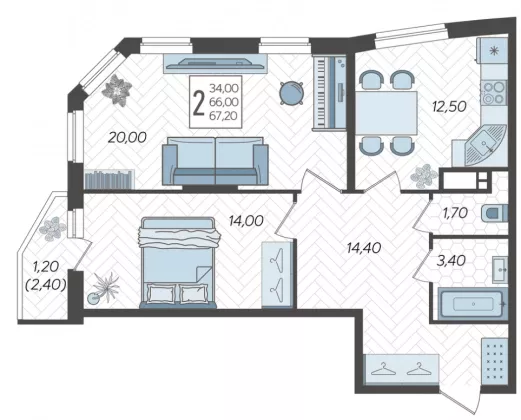 Продается 2-х комн. новостройка, 67.5 кв.м., 15/16 эт