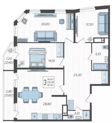 Продается 3-х комн. новостройка, 113.4 кв.м., 16/16 эт