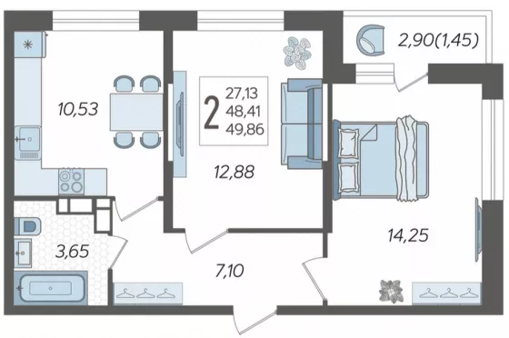 Продается 2-х комн. новостройка, 49.86 кв.м., 17/19 эт