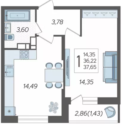 Продается однокомнатная новостройка, 37.65 кв.м., 13/19 эт