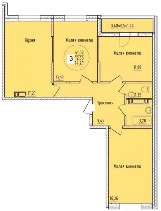 Продается 3-х комн. новостройка, 74.27 кв.м., 2/19 эт