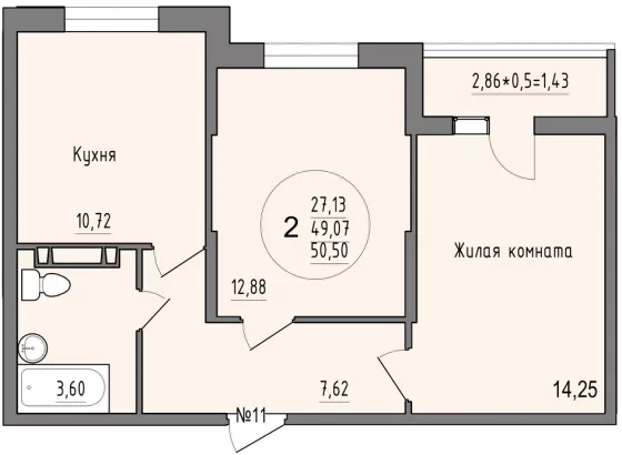 Продается 2-х комн. новостройка, 50.5 кв.м., 8/16 эт