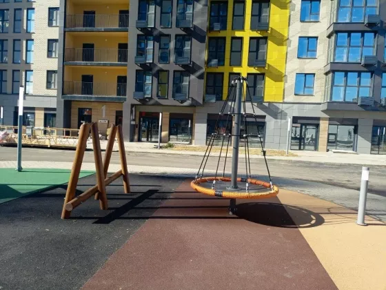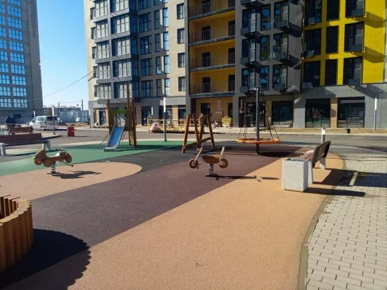 В жилом комплексе своя особая внутренняя среда, уютные зеленые дворы со скамейками, игровые и спортивные площадки с безопасным покрытием, прогулочные аллеи с фонтаном!
