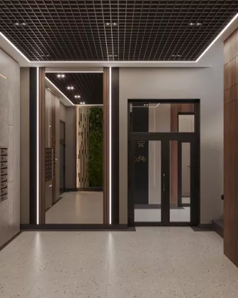Для удобства жителей в подъездах предусмотрены дизайнерские входные группы с колясочными и велосипедными местами. Видеонаблюдение на территории 24/7.