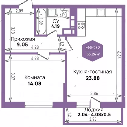 Продается 2-х комн. новостройка, 53.24 кв.м., 18/24 эт