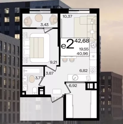 Продается 2-х комн. новостройка, 42.68 кв.м., 3/20 эт