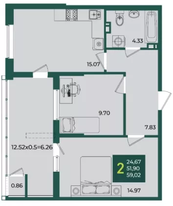 Продается 2-х комн. новостройка, 59.02 кв.м., 6/18 эт